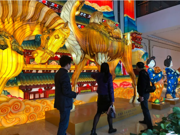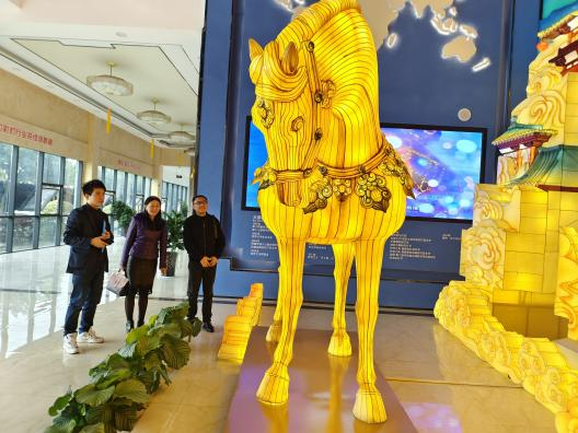 調(diào)研組一行參觀了東方彩燈(出口)基地,觀摩了燈貿(mào)集團將自貢彩燈與唐三彩兩種非遺技藝的全新融合的“唐風(fēng)華韻”展品。集團執(zhí)行總裁陶建軍向調(diào)研組一行介紹了燈貿(mào)集團發(fā)展狀況,以及公司全新彩燈產(chǎn)品。公司為促進彩燈產(chǎn)業(yè)的創(chuàng)新性轉(zhuǎn)化和創(chuàng)造性發(fā)展,推出了文化+創(chuàng)意+科技全新彩燈產(chǎn)品,產(chǎn)品深度挖掘文化底蘊動線,變被動式觀燈為主動式沉浸、行浸觀燈,燈展的供給創(chuàng)新能力和消費場景獲客能力得到了較大的提升。